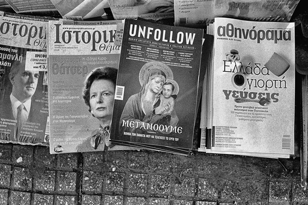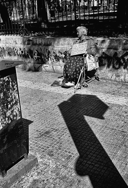 “GR€€CI$” is my third photo book and first photo e-book only. It shows the negative aspects of the economic downfall and it also shows a lot of positivity as a counterpoint. It is intertwined in two parts: “unfollow” and “follow”; to show opposite forces at work within the oldest existing capital of Europe. Most of these photographs are made in 2013, with just a few exceptions. In the book I switch from B&W to Color to make the contrast between situations to unfollow and to follow more obvious and explicit, but beware I also twist it around. In such a way you do no longer know what belongs to which category. This is photographic poetry: dramatic, supple, surreal, funny, real.